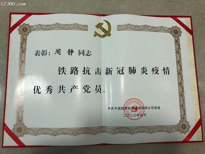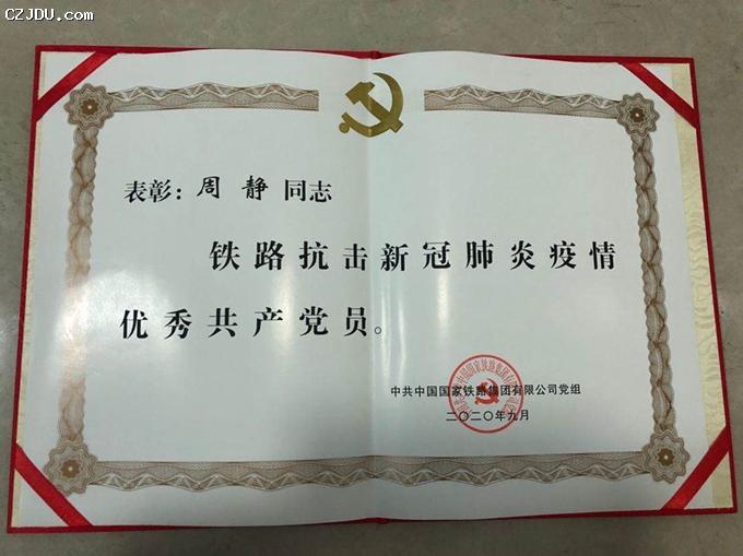 我院畢業(yè)生周靜榮獲國鐵集團(tuán)“鐵路抗擊新冠肺炎疫情優(yōu)秀共產(chǎn)黨員”榮譽(yù)稱號