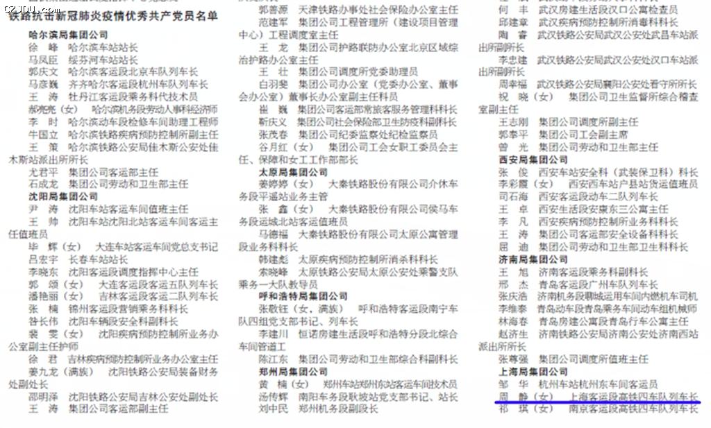 鐵路抗擊新冠疫情優(yōu)秀共產(chǎn)黨員名單