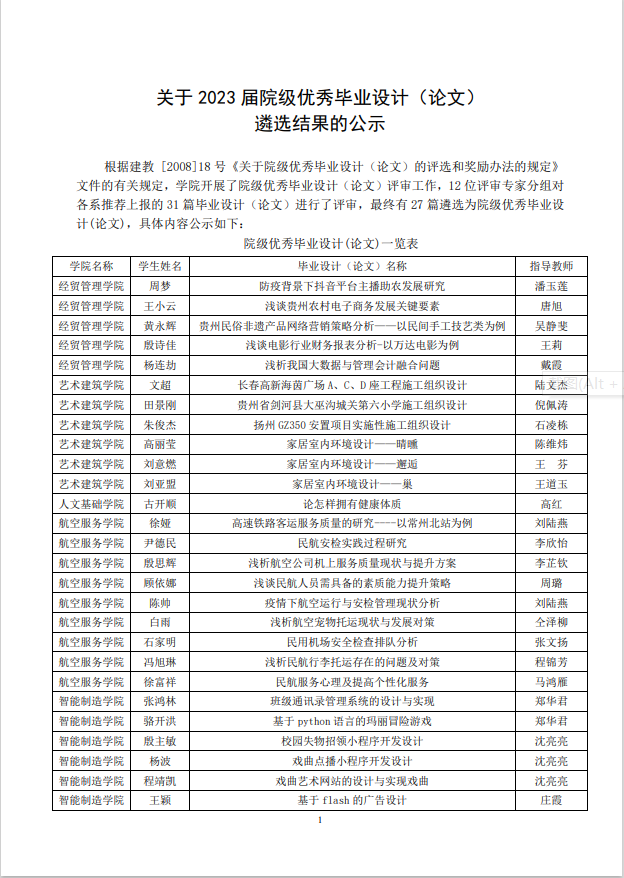 2023屆院級(jí)優(yōu)秀畢業(yè)設(shè)計(jì)(論文)遴選結(jié)果公示