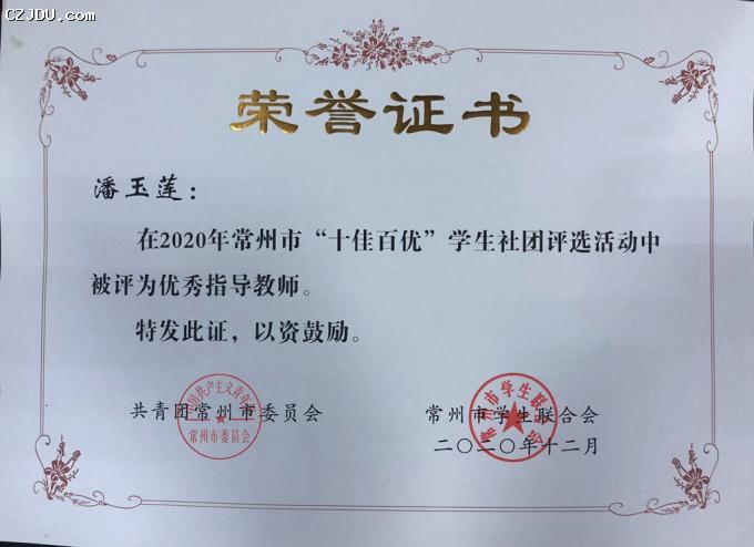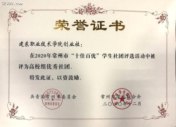 我院“創(chuàng)業(yè)社”榮獲2020年度常州市高校組“優(yōu)秀社團(tuán)”稱號(hào)