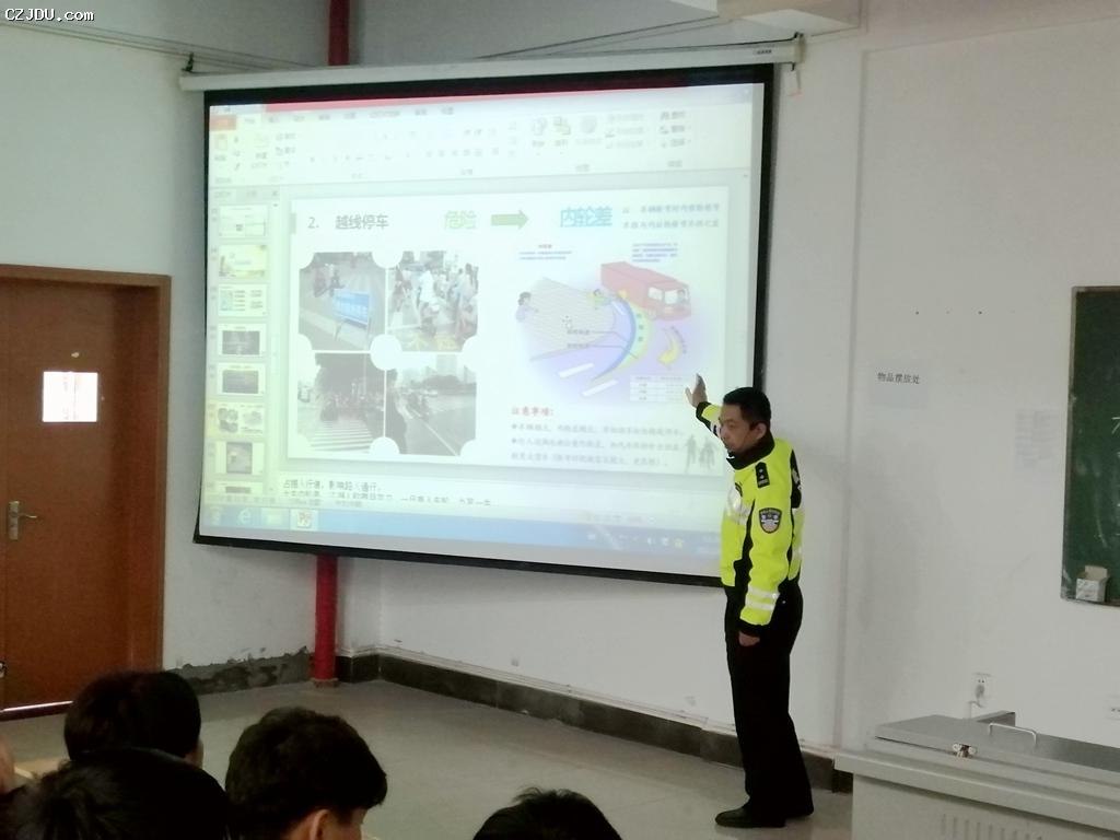 為進(jìn)一步倡導(dǎo)道路交通安全出行,普及交通安全法規(guī)知識(shí),進(jìn)一步增強(qiáng)我院學(xué)生交通安全防范意識(shí),4月1日下午,我院后勤保衛(wèi)處組織了“細(xì)節(jié)關(guān)乎生命、安全文明出行”的道路交通安全知識(shí)主題講座,邀請(qǐng)新北區(qū)新橋交警中隊(duì)蔣長(zhǎng)峰教導(dǎo)員主講,近200名師生代表參加講座。