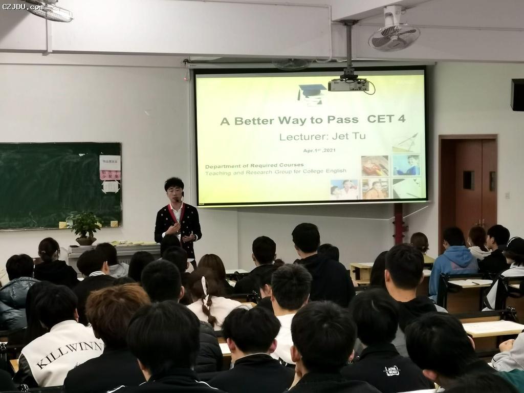 近日,為滿足我院各年級(jí)學(xué)生提升英語等級(jí)水平和學(xué)歷水平的需求,由我院教務(wù)處、繼續(xù)教育處等單位主辦,外語教研室承辦“A Better Way to Pass CET 4”系列講座。本次講座受到學(xué)院及相關(guān)部門領(lǐng)導(dǎo)的重視和支持,由我院外語教研室屠俊副教授主講,學(xué)院英語社團(tuán)負(fù)責(zé)組織與協(xié)調(diào)工作;分別于3月30日、4月1日進(jìn)行兩場(chǎng)講座、累計(jì)400余名學(xué)生參加。