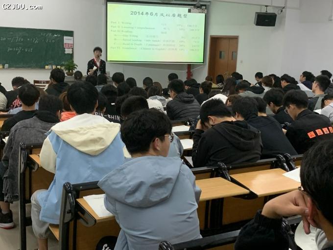 講座中,屠俊老師激勵(lì)同學(xué)們要確立更高的學(xué)習(xí)奮斗目標(biāo),提升自己的學(xué)習(xí)能力,爭(zhēng)取獲得相關(guān)水平證書;并詳細(xì)解讀了大學(xué)英語四、六級(jí)考試最新的題型、出題趨勢(shì),以及江蘇省“專轉(zhuǎn)本”政策變化及全新的計(jì)分方式。整場(chǎng)講座結(jié)合實(shí)際,全面精煉、透徹生動(dòng),現(xiàn)場(chǎng)座無虛席、秩序井然,同學(xué)們認(rèn)真聽講,互動(dòng)氣氛活躍,不時(shí)報(bào)以熱烈掌聲。