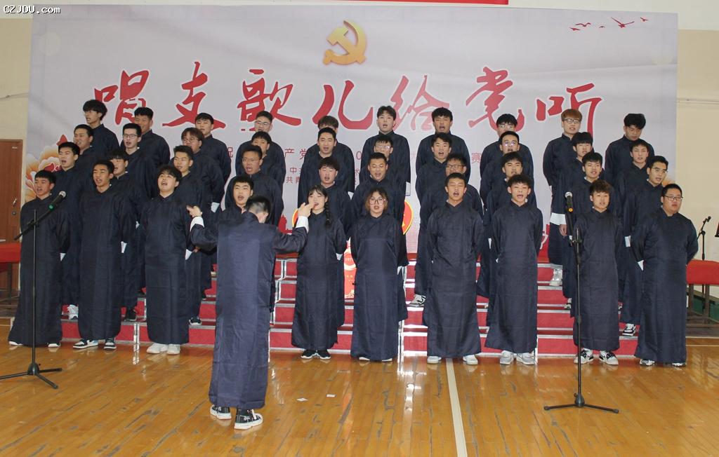 參加本次比賽的八支參賽隊身著整潔統(tǒng)一的服飾,迅速有序地進場,為在場觀眾演唱了《唱支山歌給黨聽》、《我和我的祖國》、《十送紅軍》、《紅色的贊歌》等膾炙人口的經(jīng)典紅歌。在演唱過程中,指揮動作大方得體,有較好的歌曲表現(xiàn)力,參賽學(xué)生歌曲齊唱部分聲音整齊,歌聲高亢宏亮,用滿腔的熱情表達出對黨和祖國的熱愛。一首首革命紅歌,感染了在場的每一位師生。