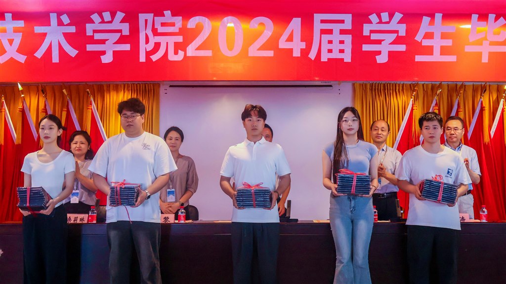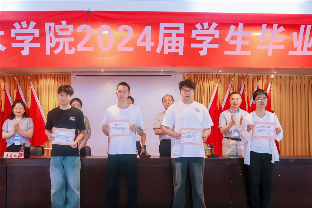 副校長張濤宣讀《2024屆畢業(yè)生資格審查報告》,學(xué)校領(lǐng)導(dǎo)為畢業(yè)生代表頒發(fā)畢業(yè)證書,共同見證2024屆畢業(yè)生迎來人生嶄新時刻;為落實立德樹人要求,樹立榜樣典型,我校對4名品學(xué)兼優(yōu)的優(yōu)秀畢業(yè)生以及27名在畢業(yè)設(shè)計(論文)中獲獎的學(xué)生進行表彰。副校長韓黎宣讀《關(guān)于公布2024年畢業(yè)設(shè)計(論文)評優(yōu)結(jié)果的通知》并為優(yōu)秀畢業(yè)設(shè)計(論文)獲得者代表頒發(fā)榮譽證書;黨委書記王志平宣讀《關(guān)于對2024屆優(yōu)秀畢業(yè)生進行表彰的決定》并為優(yōu)秀畢業(yè)生頒發(fā)榮譽證書。