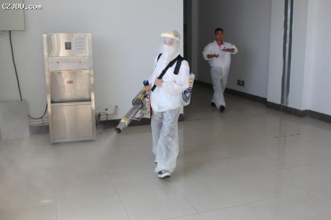 為有效預防新型冠狀病毒肺炎疫情,全力做好新學期疫情防控工作,保障全院師生身體健康安全,2021年9月26日上午,由后保處負責,天寧區(qū)紅十字應急救援隊承辦,一行8人攜專業(yè)消殺設備對我院重點場所進行全面消殺作業(yè)。