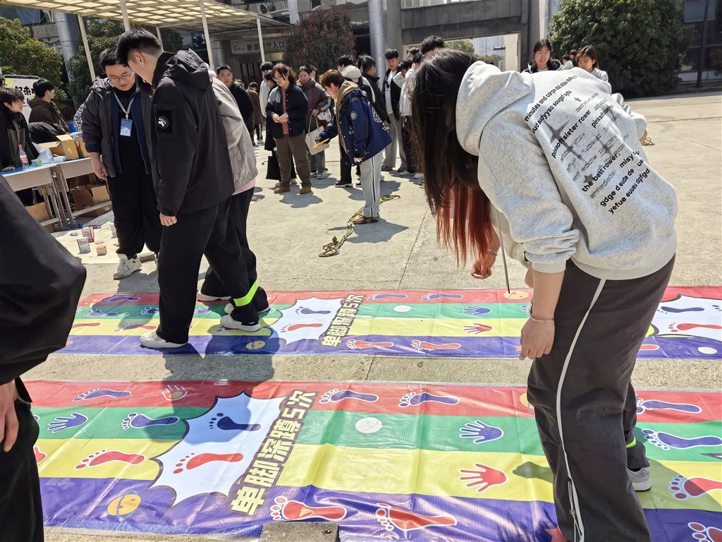 “幸運(yùn)大轉(zhuǎn)盤”與“指壓板挑戰(zhàn)”區(qū)域則充滿了驚喜與期待。參與者們轉(zhuǎn)動(dòng)轉(zhuǎn)盤、拋出套圈,每一次成功,都引發(fā)一陣歡呼,在刺激的體驗(yàn)中釋放壓力,挑戰(zhàn)自我,展現(xiàn)出堅(jiān)韌的心理韌性。