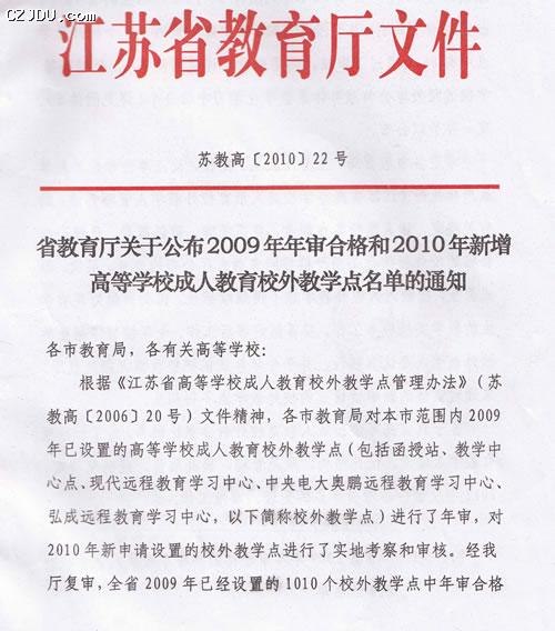 根據(jù)省教育廳蘇教高[2010]22號《省教育廳關于公布2009年年審合格和2010年新增高等學校成人教育校外教學點名單的通知》,我院成人教育江陰市經濟管理干部學校函授站通過年審合格,我院成人教育常州市龍城科技專修學校函授站正式批準設立。