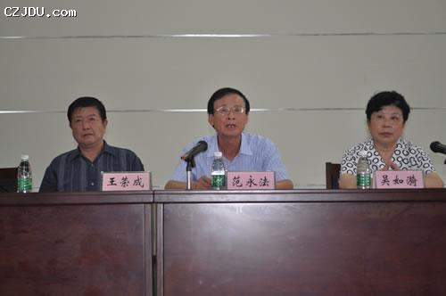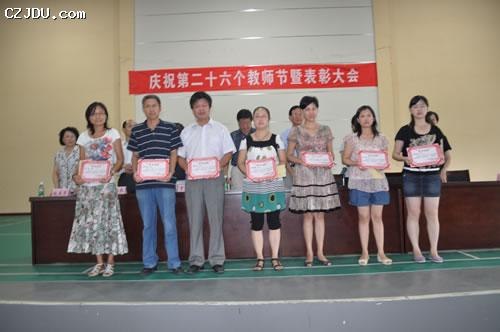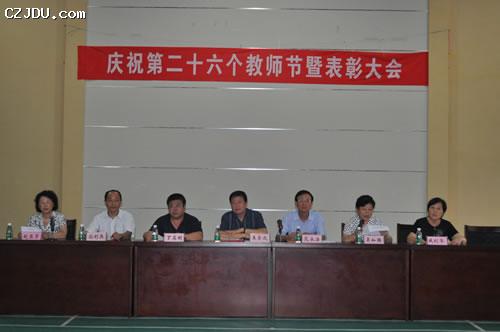 最后,范書(shū)記作了講話。范書(shū)記代表學(xué)校黨政領(lǐng)導(dǎo)班子,向全體受到表彰的優(yōu)秀教師、優(yōu)秀輔導(dǎo)員和先進(jìn)教育工作者表示熱烈的祝賀,向全體教職員工表示節(jié)日的問(wèn)候,祝大家節(jié)日愉快,工作順利,身體健康,家庭幸福;感謝大家在“教書(shū)育人、管理育人、服務(wù)育人”方面做出的突出成績(jī),感謝大家為學(xué)校發(fā)展做出的無(wú)私貢獻(xiàn)!范書(shū)記號(hào)召大家遵照胡錦濤總書(shū)記和溫家寶總理對(duì)全國(guó)教師和教育工作者提出的希望,團(tuán)結(jié)一致,開(kāi)拓創(chuàng)新,深化改革,不斷完善和加強(qiáng)師德建設(shè)工作,不斷提高師德建設(shè)水平,努力造就一支師德高尚、業(yè)務(wù)精湛、結(jié)構(gòu)合理、充滿活力的高素質(zhì)專(zhuān)業(yè)化教師隊(duì)伍。要以學(xué)生為本,關(guān)心每一位學(xué)生,善待每一位學(xué)生,服務(wù)好每一位學(xué)生,把每一位學(xué)生培養(yǎng)成合格人才,讓“忠誠(chéng)、敬業(yè)、樂(lè)群、發(fā)展”成為我校教職工的職業(yè)道德追求,為把我校建設(shè)成為一流民辦高職院而努力奮斗!