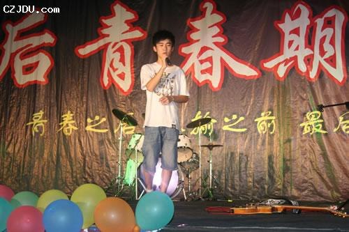演出還沒開始已經(jīng)是全場滿座,吉他社Keeptoday五名成員首先以一首張震岳的《自由》開場,繼而表演了一場別具一格的“另類魔術”。詼諧的語言,激情四射的演奏,表現(xiàn)了當代大學生對生活的熱愛和對未來的向往。當一名叫薛璐的女孩帶著她的自創(chuàng)歌曲登臺后,更是將演出推向了高潮。歌詞不是很華麗但已足夠表達對自己夢想的執(zhí)著,她唱出了自己的心聲,也唱出了我們每個人的心聲,讓我們讀懂了一個創(chuàng)作者的心。歌聲依然,掌聲不斷,最后全體成員以一首張震岳的《再見》告終!