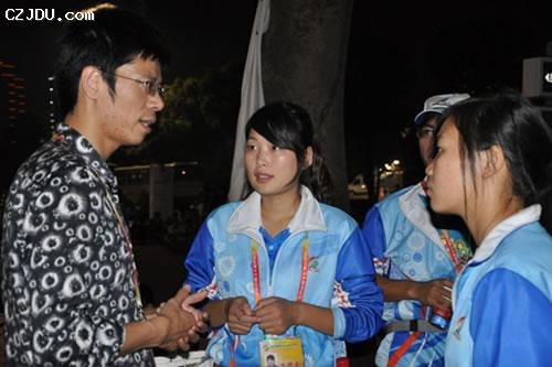 省運(yùn)會組委會成員和我院志愿者親切交談