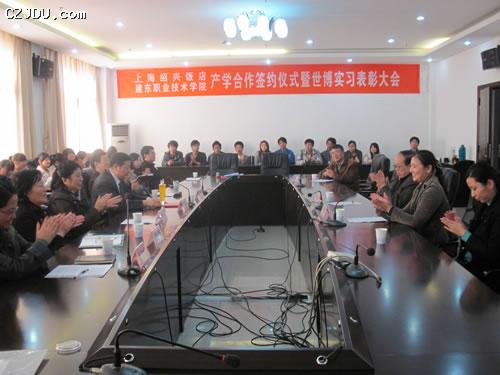 大會由應(yīng)用外語系教學(xué)主任桑莉琳主持,王榮成院長、吳如漪副院長、許心國處長、戎釗華處長出席。會上,吳院長致歡迎詞,誠摯感謝紹興飯店對我院學(xué)生的指導(dǎo)和培養(yǎng)。紹興飯店總裁任祖樑先生發(fā)表了熱情的講話,高度贊揚了我院學(xué)生在實習(xí)中的出色表現(xiàn),并向?qū)W院轉(zhuǎn)交由世博當(dāng)局頒發(fā)的獎杯、獎狀。紹興飯店經(jīng)理吳旭東女士宣布10名受表彰學(xué)生名單,其中商英班陳霏、成君兩人被評為飯店優(yōu)秀員工。在熱烈掌聲中,任總和王院長簽署了雙方產(chǎn)學(xué)合作意向書。產(chǎn)學(xué)合作是我院的辦學(xué)特色,也是當(dāng)代高職院校的新發(fā)展,王院長在最后的總結(jié)講話中再次提出校企合作中的四個合作:合作辦學(xué)、合作育人、合作就業(yè)、合作發(fā)展,唯有這樣,產(chǎn)學(xué)合作之路才能走得長久!