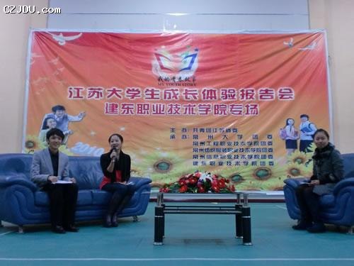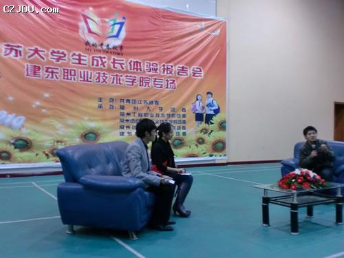 為了進(jìn)一步展現(xiàn)大學(xué)生的時(shí)代風(fēng)采,切實(shí)幫助2010級(jí)新生盡快適應(yīng)校園生活、確定學(xué)業(yè)目標(biāo),由江蘇團(tuán)省委主辦,常州大學(xué)、常州信息職業(yè)技術(shù)學(xué)院、常州工程職業(yè)技術(shù)學(xué)院、常州紡織服裝職業(yè)技術(shù)學(xué)院、建東職業(yè)技術(shù)學(xué)院團(tuán)委聯(lián)合承辦的“我的青春故事”——2010江蘇大學(xué)生成長(zhǎng)體驗(yàn)報(bào)告會(huì)于11月25日在建東學(xué)院報(bào)告廳拉開了序幕,在新生中引起了強(qiáng)烈的反響。