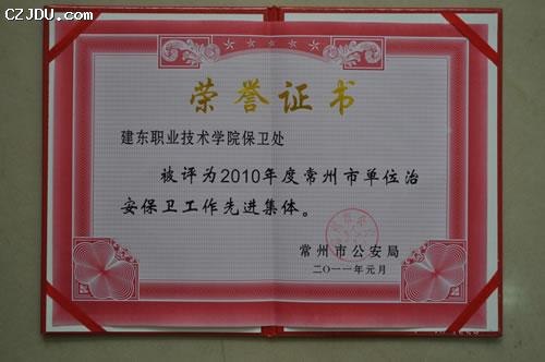 日前,我院保衛(wèi)處被常州市公安局授予“2010年度常州市單位治安保衛(wèi)工作先進(jìn)集體”榮譽(yù)稱號(常公局[2011]16號文)。
