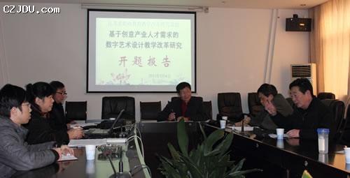 我院獲批準的江蘇省職業(yè)教育教學(xué)改革研究課題:《基于創(chuàng)意產(chǎn)業(yè)人才需求的數(shù)字藝術(shù)設(shè)計教學(xué)改革研究》開題報告會于2011年3月4日下午三時,在圖書館103號會議室舉行。課題組全體成員和校內(nèi)、外評議組專家出席了會議,吳如漪副院長應(yīng)邀擔(dān)任評議組組長。