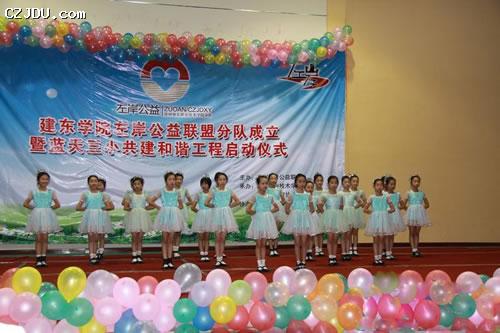 左岸公益聯(lián)盟建東職業(yè)技術(shù)學(xué)院分隊正式成立揭牌儀式暨與藍天三小共建和諧工程啟動儀式于5月11日下午2點在建東學(xué)院報告廳隆重舉行。