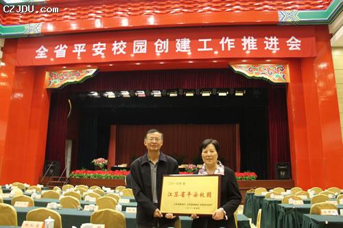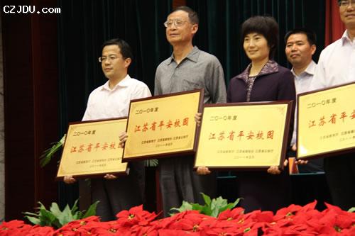 會(huì)上對(duì)去年以南京大學(xué)為首的獲得“江蘇省平安校園”榮譽(yù)稱號(hào)的29所高校頒發(fā)了獎(jiǎng)牌,我院名列其中,范永法書記代表學(xué)院上臺(tái)接受了獎(jiǎng)牌。