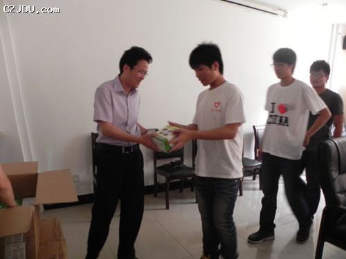 隨后,團(tuán)區(qū)委代表區(qū)委、區(qū)政府為建東學(xué)院的志愿者們送上了飲料等慰問(wèn)品。