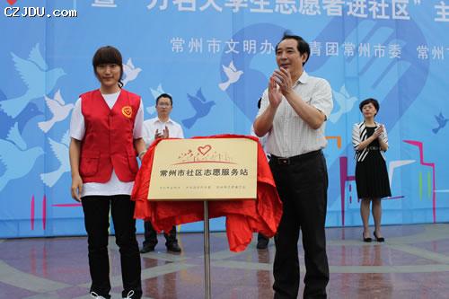 市文明辦主任張火炫為社區(qū)志愿者服務站揭牌