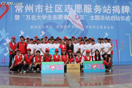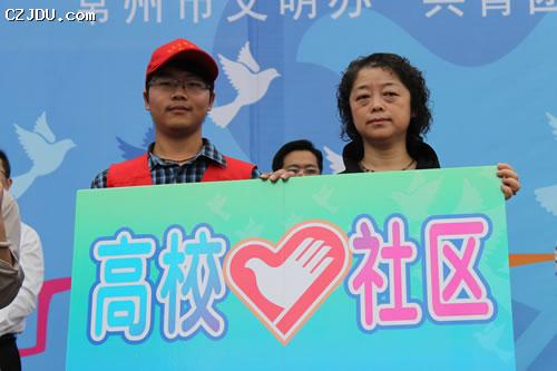 啟動儀式上,我院蔣雯同學代表志愿者宣讀了“萬名大學生志愿者進社區(qū)”的倡議書,市領導也向10所高校的志愿者代表授旗。