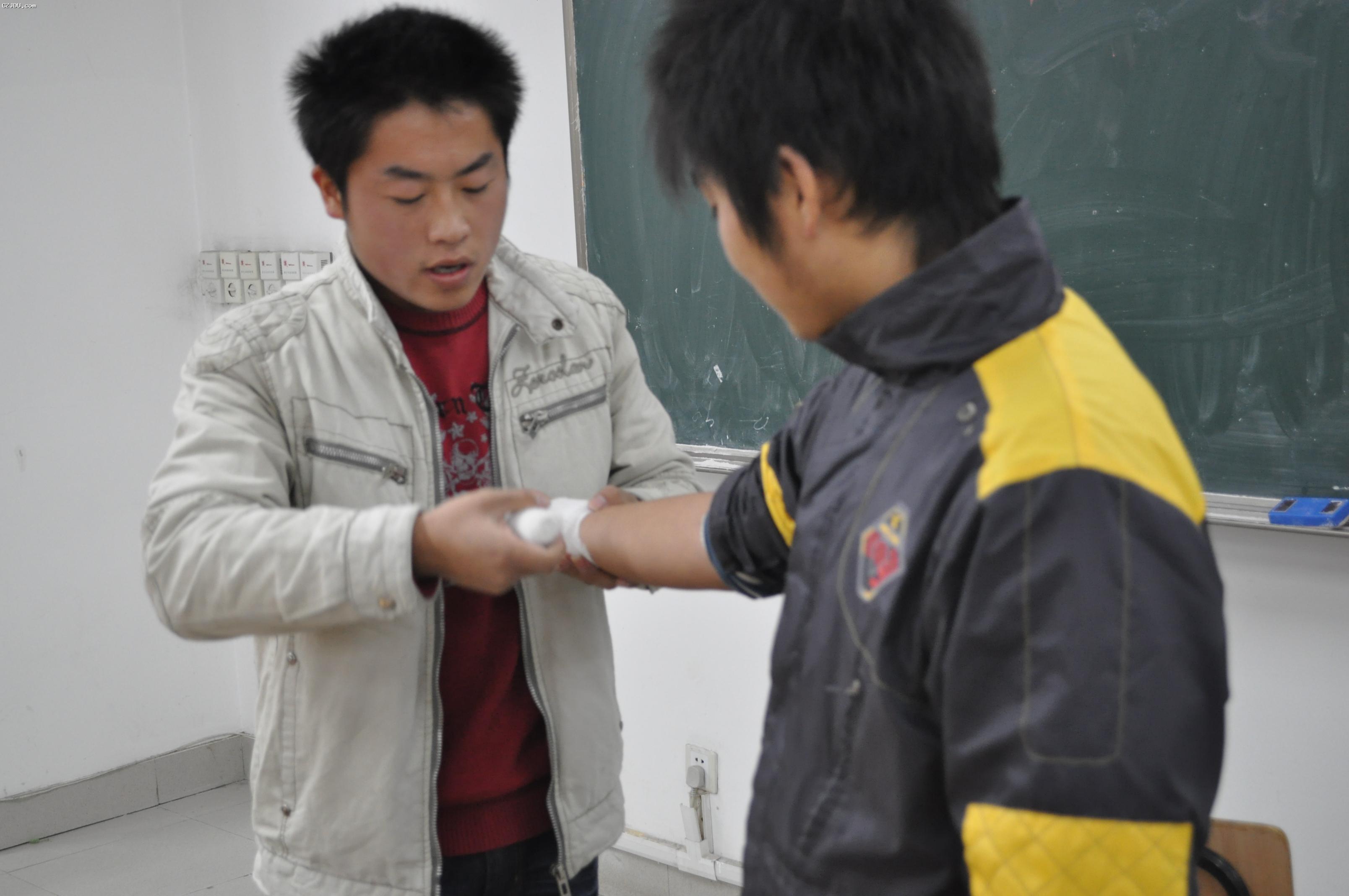 三、保衛(wèi)科講解發(fā)生火災(zāi)時(shí)如何逃離火災(zāi)現(xiàn)場、如何自救。校醫(yī)講解如何包扎傷口。