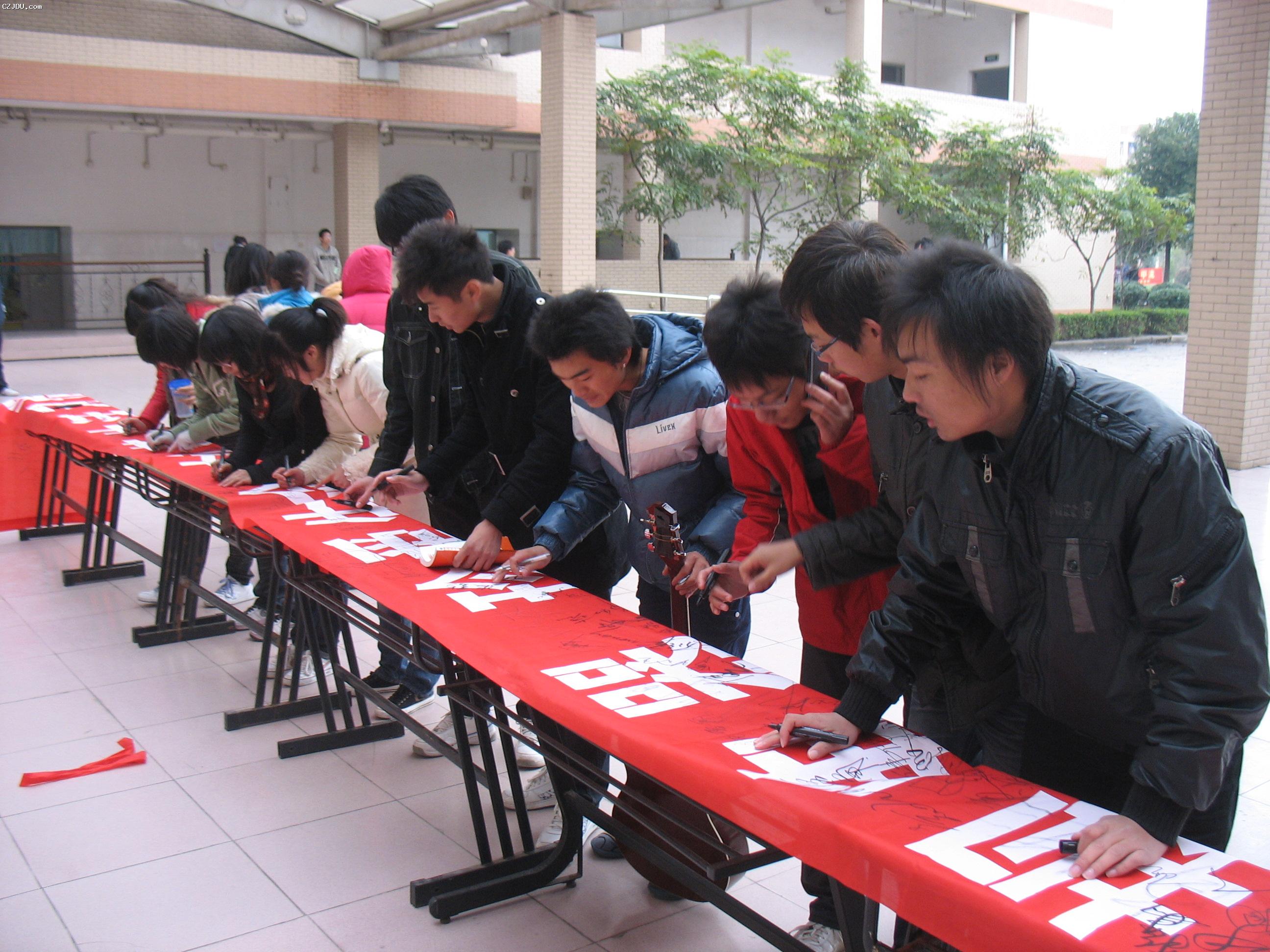 一、全院師生在“杜絕違規(guī)電器,創(chuàng)建平安校園”的橫幅上集體簽名。