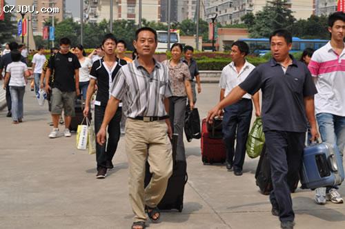 許多學(xué)生在家長(zhǎng)的陪同下前來報(bào)到