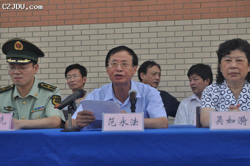 黨委書記范永法向全體新生作了軍訓(xùn)動員。范書記希望同學(xué)們在軍訓(xùn)中嚴(yán)格要求自己,聽從指揮、遵守紀(jì)律、刻苦訓(xùn)練,增強(qiáng)國防意識,鍛煉意志品質(zhì),養(yǎng)成良好的行為規(guī)范和生活習(xí)慣,為即將開始的大學(xué)生活翻開嶄新的一頁,在人生路上留下一份美好的記憶。