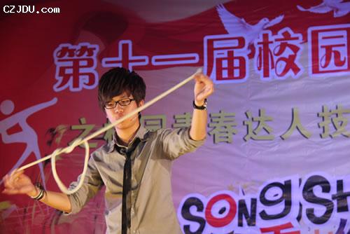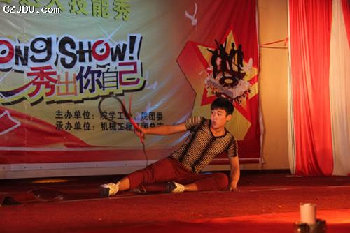 隨著開場跳躍的音符和動(dòng)感的舞姿,本次活動(dòng)正式拉開帷幕。舞臺(tái)上燈光閃爍,“達(dá)人”們才藝各異。1號(hào)選手“武術(shù)達(dá)人”季春意帶來的武術(shù)表演,立刻讓現(xiàn)場沸騰了起來,也讓武術(shù)的力量體現(xiàn)的淋漓盡致;2號(hào)選手“模仿達(dá)人”蔡宇的一首《冰雨》將劉德華模仿的惟妙惟肖;3號(hào)選手“古箏達(dá)人”陳宇的一曲《青花瓷》深情委婉;6號(hào)選手“魔術(shù)達(dá)人”楊斌帶來的魔術(shù)表演《預(yù)言》,把現(xiàn)場的氣氛帶到了最高潮,也贏得了滿堂彩;最后“街舞達(dá)人”率動(dòng)nucleav crew舞隊(duì)給觀眾帶來的街舞秀《mix crew》震撼了舞臺(tái),其勁爆的場面、高難度卻無可挑剔的動(dòng)作讓現(xiàn)場觀眾驚嘆連連,更是贏得了連綿不斷的尖叫聲和歡呼聲。