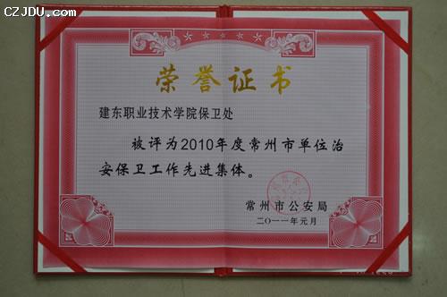 日前,我院保衛(wèi)處被常州市公安局授予“2010年度常州市單位治安保衛(wèi)工作先進(jìn)集體”榮譽(yù)稱號(常公局[2011]16號文)。