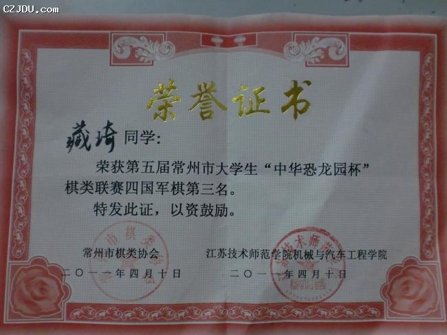 我院棋牌社在常州市第五屆“中華恐龍園杯”高校棋類聯(lián)賽中獲得優(yōu)異成績
