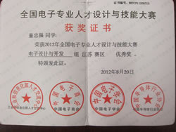 2012年“國信長天杯”第四屆全國電子專業(yè)人才設(shè)計與技能大賽江蘇常州賽區(qū)選撥賽在常州工學院舉行。我系積極組織學生參賽,現(xiàn)江蘇賽區(qū)比賽成績已揭曉。我院學生鄭成方、李肖肖、吳俊、董忠強、朱羽玲在初賽中取得優(yōu)異的成績,二等獎兩項,三等獎一項,優(yōu)秀獎兩項。鄭成方、李肖肖兩位學生將代表江蘇賽區(qū)參加于10月底在北京舉行的全國總決賽。