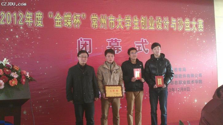 創(chuàng)業(yè)設計大賽一等獎:指導教師蔡月鵬和獲獎學生周甲聰(11會計)、史和平(11會計)、錢凌聰(12工商)、姜培民(12機電)