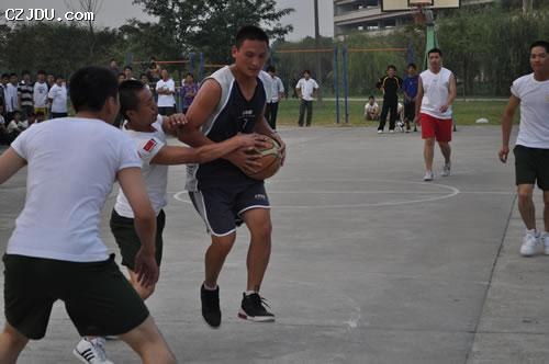 在慶祝教師節(jié)活動期間,學院教工男子籃球隊與來我院承訓的武警水電五支隊官兵在學院籃球場進行一場友誼比賽。王榮成院長也到現(xiàn)場觀看了比賽并為雙方隊員加油助威。