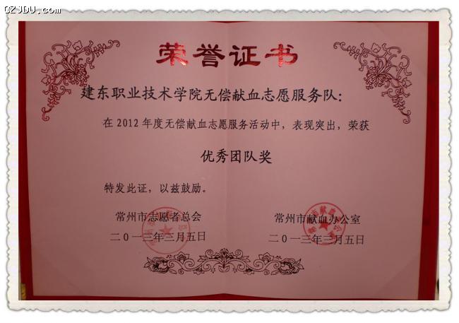 為學(xué)習(xí)貫徹黨的十八大精神,在全社會(huì)廣泛開展志愿服務(wù),服務(wù)和諧社會(huì)建設(shè),進(jìn)一步推進(jìn)我院志愿服務(wù)事業(yè)深入發(fā)展,3月25日我院無(wú)償獻(xiàn)血志愿服務(wù)在常州市中心血站參加2012年度常州市無(wú)償獻(xiàn)血志愿服務(wù)總隊(duì)評(píng)選表彰活動(dòng),我院無(wú)償獻(xiàn)血志愿服務(wù)隊(duì)在2012年度無(wú)償獻(xiàn)血志愿服務(wù)活動(dòng)中,表現(xiàn)突出,榮獲“優(yōu)秀團(tuán)隊(duì)獎(jiǎng)”。