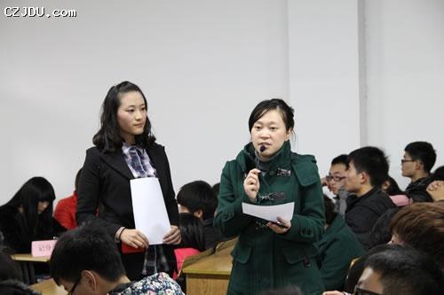 比賽過程中,師生互動也成為活動一大亮點(diǎn)。思政室王艷君主任和團(tuán)委書記季艷老師分別就“復(fù)旦研究生投毒案”和“中國式過馬路”等熱點(diǎn)問題進(jìn)行評析,引起學(xué)生們的共鳴。學(xué)工處戎釗華處長做總結(jié)發(fā)言,對我院學(xué)生活動和大學(xué)生成長成才提出了三點(diǎn)希望:“1、希望今后我院德育實(shí)踐教育能不斷開拓創(chuàng)新,開展更多學(xué)習(xí)型、知識型的第二課堂活動,豐富同學(xué)們的課余文化生活,提高同學(xué)們的綜合素質(zhì)。2、希望同學(xué)們在今后的學(xué)習(xí)生活中能用‘眼睛觀察社會,用實(shí)踐體驗生活’,在學(xué)習(xí)實(shí)踐過程中開拓視野,增長才干!3、希望同學(xué)們今后能更多地參加此類學(xué)習(xí)實(shí)踐活動,帶動學(xué)校良好的學(xué)習(xí)風(fēng)氣,形成良好的學(xué)習(xí)氛圍?!鳖I(lǐng)導(dǎo)的祝愿和希望將活動推向了高潮。