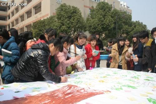 春回大地,萬物復(fù)蘇,我們又迎來了一年一次的植樹節(jié)。為了讓今年的植樹節(jié)更有意義,院經(jīng)管系志愿者協(xié)會于3月12號中午在一號教學(xué)樓前面舉行了植樹節(jié)印手印、寫祝?;顒??;顒又形以豪蠋熀屯瑢W(xué)們都積極參與,全院志愿者們也都積極宣傳綠化、低碳、環(huán)保知識,進(jìn)一步讓同學(xué)們了解綠化的重要性,也同時(shí)激發(fā)了同學(xué)們愛護(hù)花草樹木的熱情。