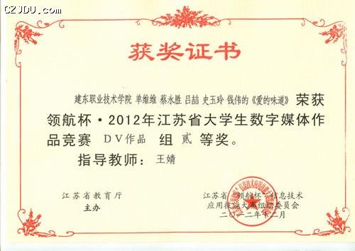 江蘇省“領(lǐng)航杯”大學(xué)生數(shù)字媒體作品競(jìng)賽是由省教育廳主管、由省教育管理信息中心和省教育技術(shù)研究會(huì)共同組織實(shí)施的全省高校每年一次的大型競(jìng)賽活動(dòng),旨在進(jìn)一步推動(dòng)教育技術(shù)深層次應(yīng)用,培養(yǎng)具有信息素養(yǎng)和實(shí)踐能力的創(chuàng)新人才,為在校大學(xué)生搭建一個(gè)展示自我、服務(wù)和建設(shè)社會(huì)的平臺(tái)。此次競(jìng)賽共分為DV作品、動(dòng)漫作品、網(wǎng)站作品、課件作品和應(yīng)用軟件五大類(lèi),從全省83所高校申報(bào)的906件作品中評(píng)選推薦出優(yōu)秀數(shù)字媒體作品282項(xiàng),其中,一等獎(jiǎng)9項(xiàng)、二等獎(jiǎng)91項(xiàng)、三等獎(jiǎng)182項(xiàng)。