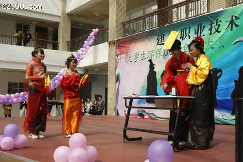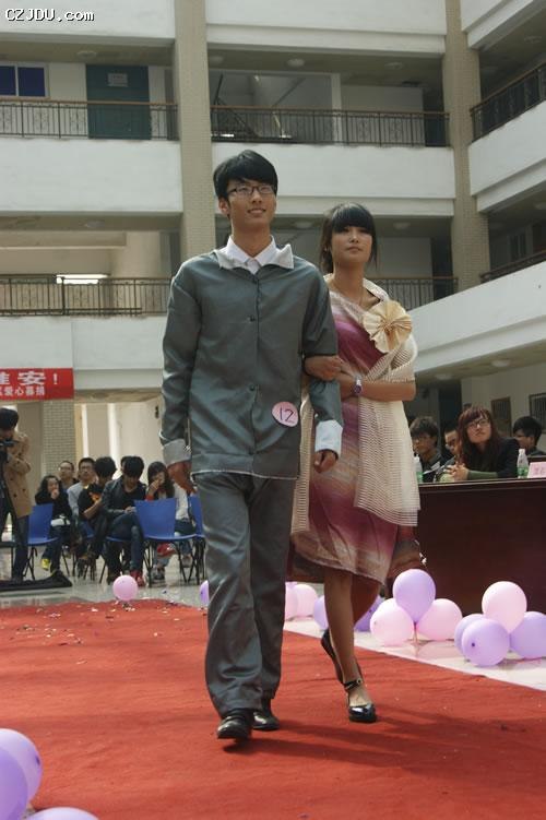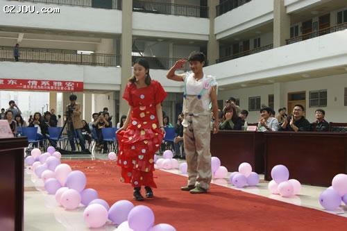 別出心裁的設(shè)計(jì)、五花八門的制作材料、樸實(shí)而又不低調(diào)的服飾創(chuàng)意緊扣環(huán)保理念給全校師生創(chuàng)造了一場視覺上的盛宴,處處彰顯著當(dāng)代大學(xué)生天馬行空般的思想,展現(xiàn)出屬于他們的活力!經(jīng)管系青年志愿者協(xié)會的惡搞70串燒秀以其詼諧幽默的表演、獨(dú)到貼身的服裝再現(xiàn)了70年代鄉(xiāng)村農(nóng)民的質(zhì)樸純真;院志愿者協(xié)會代表隊(duì)則帶著大家來到了雍正王朝,上演了一場別具一格的‘清朝style’;電子系學(xué)生會代表隊(duì),利用廢舊床單、舊蚊帳等材料再現(xiàn)了唐朝書生趕考的橋段,恍惚間帶著大家穿越到了大唐盛世,華麗的服飾頗具特色,如鳳凰涅槃一般重獲新生,煥發(fā)別樣光彩,將唐代主題展現(xiàn)的淋漓盡致……活動在熱烈的掌聲中圓滿落下了帷幕!