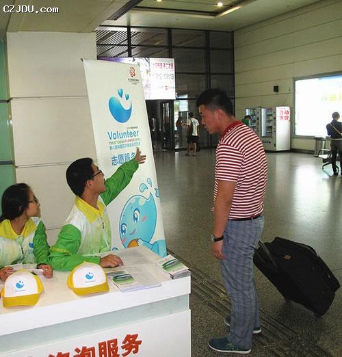 “小水滴”們正在給旅客講解花博會(huì)相關(guān)情況1