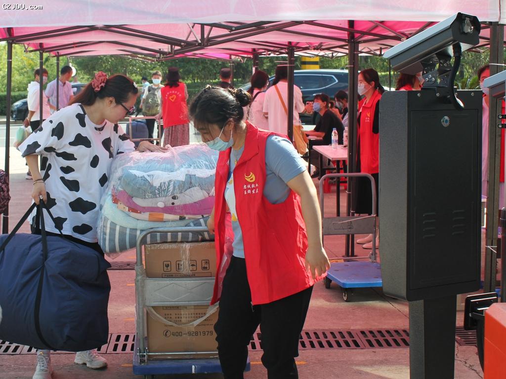 金秋驕陽似火,我院黨員發(fā)揚(yáng)不怕吃苦的精神,頂著烈日,熱情迎接返校學(xué)生,幫助學(xué)生家長(zhǎng)卸下行李,手提車推將行李一件一件、一趟一趟運(yùn)送至宿舍,切實(shí)解決了學(xué)生返校行李多、不易搬運(yùn)的實(shí)際困難。送行的家長(zhǎng)深深感受到學(xué)院關(guān)愛學(xué)生,老師工作熱情服務(wù)周到,使之放心回程。