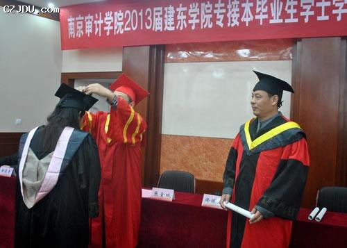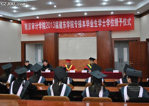 南京審計學(xué)院繼續(xù)教育學(xué)院徐振龍院長宣讀了《關(guān)于授予2013屆自學(xué)考試“專接本”畢業(yè)生學(xué)士學(xué)位的通告》。南京審計學(xué)院2013屆建東職業(yè)技術(shù)學(xué)院專接本畢業(yè)生共有49人,其中34人被授予學(xué)士學(xué)位。