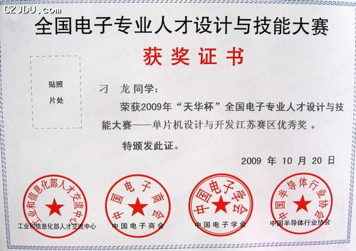 日前,2009天華杯全國(guó)電子專業(yè)人才設(shè)計(jì)與技能大賽蘇南片的比賽在常工院舉行,我院共有4名學(xué)生參賽,經(jīng)過(guò)激烈角逐,我院07應(yīng)用電子(1)班的刁龍同學(xué)獲江蘇賽區(qū)單片機(jī)設(shè)計(jì)與開發(fā)優(yōu)秀獎(jiǎng),潘菊平、侯玉杰老師榮獲優(yōu)秀指導(dǎo)教師稱號(hào)。