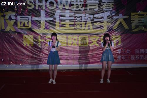 經(jīng)過層層選拔,建筑系的男生組合洛石、李杰、郭曼、陳乙銘、王康、王凱,經(jīng)管系的韓雪、蘇傳喜,藝術(shù)系的女生組合施金燁、丁彥、錢宇等十組選手榮獲“2014年度校園十佳歌手”榮譽稱號。
