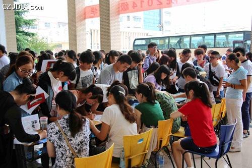 9日一大早,老師和同學們便開始忙碌起來,以飽滿的熱情進入工作狀態(tài)。院長王榮成,黨委書記、副院長丁高明,黨委副書記、副院長孫利兵和其他院領導班子成員也早早的趕到學院,到迎新現(xiàn)場看望了2014級報到新生,了解學生報到情況,慰問迎新工作人員。院領導與現(xiàn)場工作人員親切交談,詢問學生報到、各項助學貸款、特別是“綠色通道”的情況,對他們熱情、周到、細致的服務給予充分肯定。