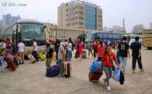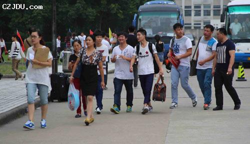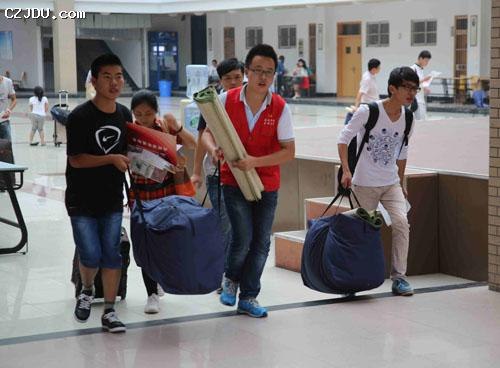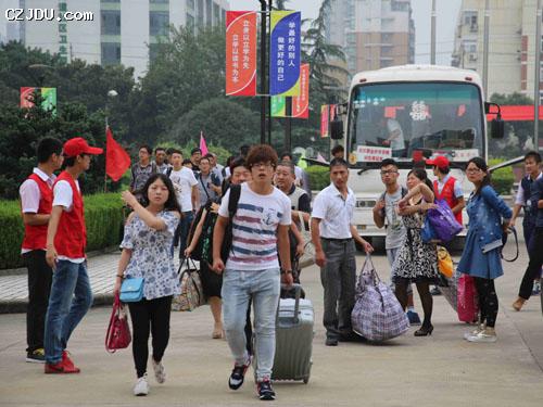 在陽光大廳前,一輛輛接送新生的車魚貫而行。一張張稚嫩的面孔,一雙雙青澀的眼睛,一個個色彩鮮艷的行李包,勾勒出一副開學迎新的熱鬧場景。來自全國各地的新生及家長拿著行李不斷涌來,學院教師、大學生志愿者在學院各個方位給他們指路,為他們解答疑問,用他們的熱情和耐心向前來報到的學生和家長介紹著學校的各項情況。