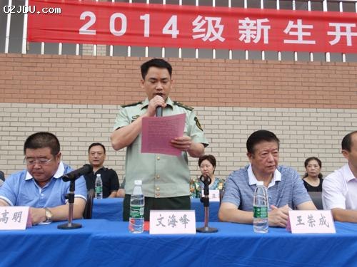 開學(xué)典禮暨軍訓(xùn)動員大會由學(xué)工處處長戎釗華主持。首先戎處長介紹了出席開學(xué)典禮暨軍訓(xùn)動員大會的領(lǐng)導(dǎo)。