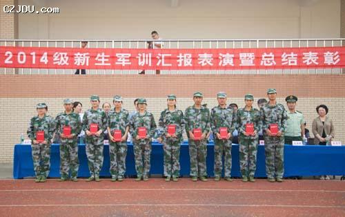 黨委書記丁高明作了軍訓(xùn)總結(jié)。丁書記首先代表學(xué)院黨委、行政和全體教職員工,向支持和關(guān)心我院軍訓(xùn)工作的武警水電五支隊(duì)的各位教官表示衷心的感謝!向負(fù)責(zé)組織實(shí)施軍訓(xùn)工作的全體教職員工表示親切的問候!向勝利完成軍訓(xùn)工作的2014級(jí)全體新同學(xué)表示熱烈的祝賀!丁書記指出,通過軍訓(xùn),同學(xué)們培養(yǎng)了良好的集體主義精神,加強(qiáng)了組織紀(jì)律性,增強(qiáng)了法制觀念;通過軍訓(xùn),同學(xué)們磨練了意志,增強(qiáng)了自我約束能力;通過軍訓(xùn),同學(xué)們鍛煉了體魄,增長(zhǎng)了知識(shí),開闊了眼界。在教官的帶領(lǐng)下,同學(xué)們以飽滿的熱情、昂揚(yáng)的斗志,克服各種困難,團(tuán)結(jié)友愛、刻苦訓(xùn)練,初步掌握了基本的軍事理論知識(shí)和技能,培養(yǎng)了自我管理能力,提高了綜合素質(zhì)。他指出通過先進(jìn)營(yíng)、連、文明宿舍、軍訓(xùn)積極分子等一些評(píng)優(yōu)爭(zhēng)先活動(dòng)的開展,同學(xué)們的集體凝聚力進(jìn)一步增強(qiáng),積極進(jìn)取、團(tuán)結(jié)向上、有戰(zhàn)斗力的班集體正在形成。這些都值得我們?cè)诮窈蟮膶W(xué)習(xí)、生活中進(jìn)一步發(fā)揚(yáng)光大。