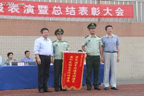 王榮成院長(zhǎng)、丁高明書記向承訓(xùn)部隊(duì)授錦旗