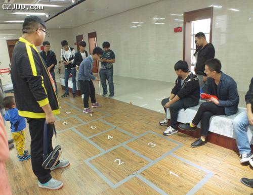 傳統(tǒng)文體項(xiàng)目展廳,學(xué)生體驗(yàn)跳格子、抽陀螺、踢毽子等游戲活動(dòng)